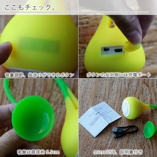 デスクでも、キッチンでも、お風呂やアウトドアでも、どこにでもつけられるキュートなBluetoothスピーカーです。