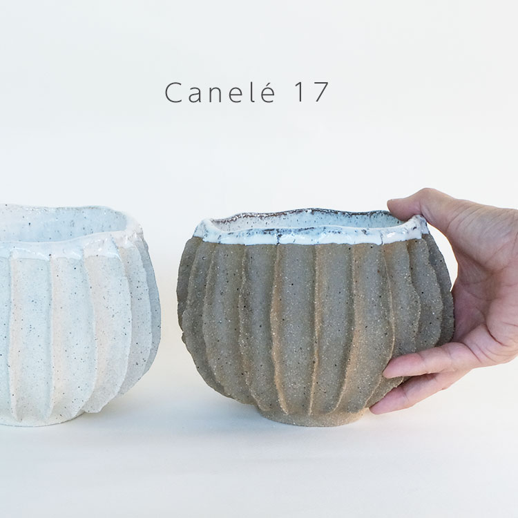商品名 カヌレ17 内容 本体×1 素材 陶器 サイズ Φ17H13.5cm その他 ※底穴はございません 簡易防水の為水漏れする場合もありますざらざらした粒子の釉薬がかかったストーンウェアーポット!鉢口元の白い釉薬がアクセントになっています! カヌレ型のようなひだがもたらす陰影もこの鉢の魅力です!