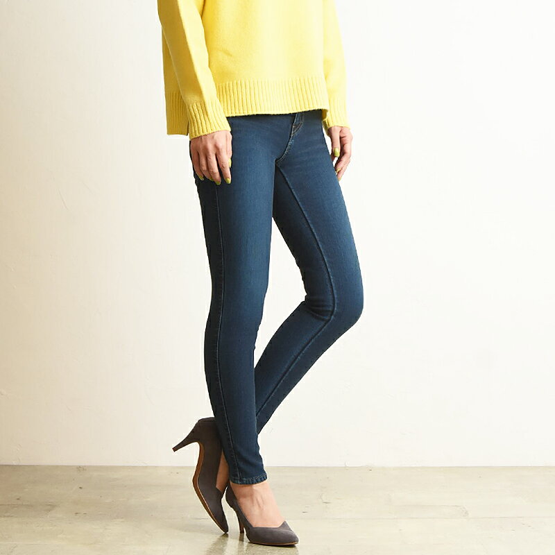 SOMETHING サムシング LADIVA ラディーバ ボディファイア 暖アンクルフィットスキニーデニム VL112W モデルスペック:165cm、50kg 着用カラー:126/濃色ブルー、118/ホワイト 着用サイズ:S コンセプトは「楽してかわいく、楽して美しく」。